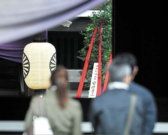 ????安倍此次向靖國(guó)神社供奉祭品的時(shí)機(jī)十分微妙,因?yàn)槊绹?guó)總統(tǒng)貝拉克·奧巴馬從23日起將對(duì)日本進(jìn)行為期3天的國(guó)事訪問。