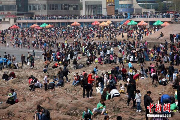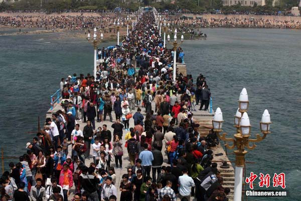 青島5月2日游客量井噴 棧橋變成“人橋”