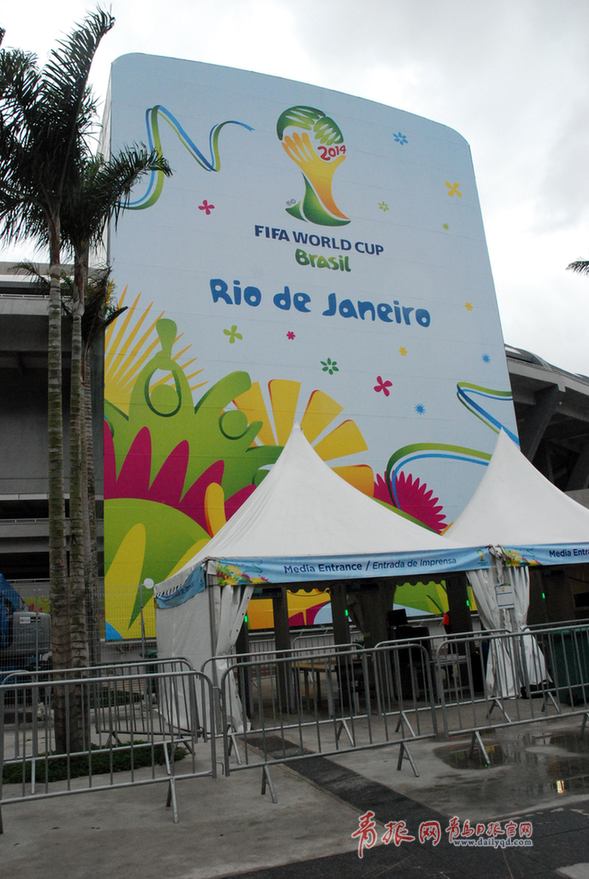 #前線直擊#豎立在馬拉卡納體育場外的巨大世界杯宣傳海報。