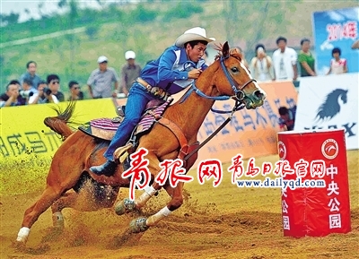 由中國(guó)馬術(shù)協(xié)會(huì)、青島市體育總會(huì)主辦的2014“青島中央公園杯”全國(guó)馬術(shù)競(jìng)技繞桶冠軍賽暨繞桶馬術(shù)世界杯中國(guó)賽區(qū)選拔賽青島站的比賽15日在即墨舉行。周光輝 攝