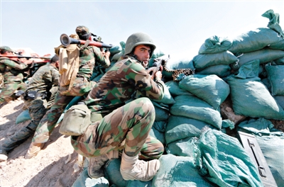 23日,伊拉克庫(kù)爾德武裝正在陣地實(shí)施警戒