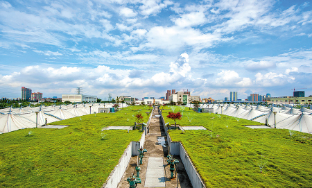 圖為采用生物除臭技術(shù)的南區(qū)污水處理廠一角。