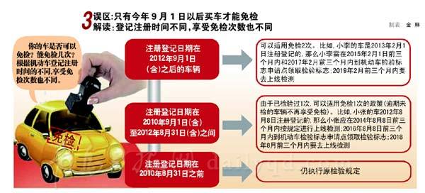 3、誤區(qū):只有今年9月1日以后買車才能免檢