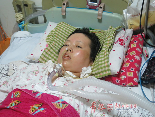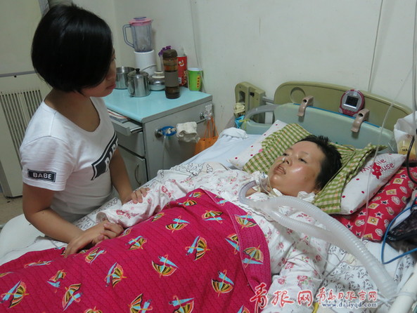 ????她叫高蘭,今年39歲,家住青島市市北區(qū)合肥路街道。2009年在北京協(xié)和醫(yī)院診斷為“肌萎縮性脊髓側(cè)索硬化癥”(漸凍人)。鼻子插管、針管送食;切斷器官,靠呼吸機呼吸。醫(yī)生說:“得了這種病,就判了死緩。一般維持兩到三年?!?青醫(yī)附院監(jiān)護室的這一張病床、這一個姿勢,她一躺就是四年多。