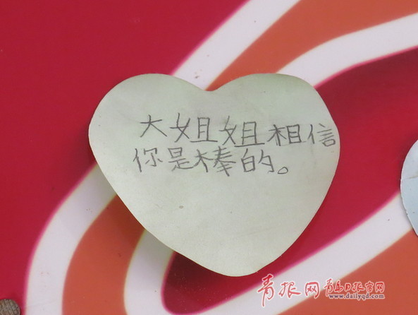 ????來“幸福人水餃店”吃水餃的顧客,都會寫張便貼,表達(dá)對這個家庭的同情與鼓勵。