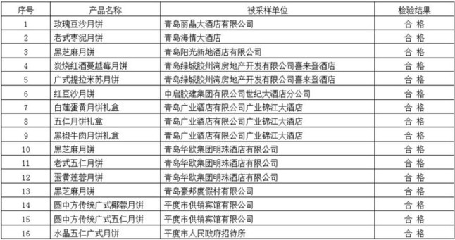 青島16家賓館飯店月餅禮盒合格率100%