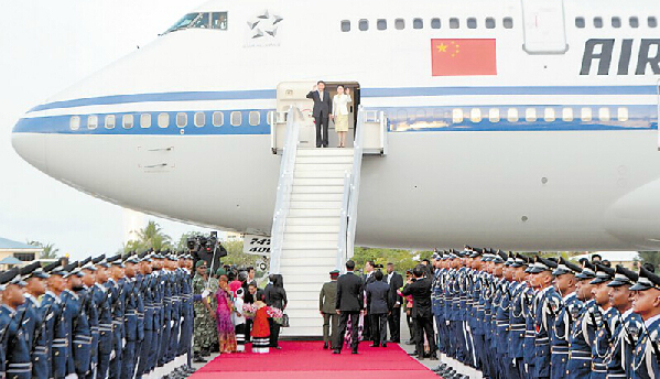 ????9月14日,國家主席習(xí)近平抵達(dá)馬累,開始對(duì)馬爾代夫進(jìn)行國事訪問。習(xí)近平和夫人彭麗媛在機(jī)場(chǎng)受到馬爾代夫總統(tǒng)亞明夫婦的熱情迎接。新華社照片
