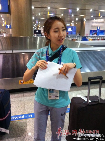 本報(bào)記者抵達(dá)韓國(guó)仁川 偶遇女志愿者感慨美麗大方