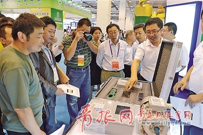 ■青島市企業(yè)研發(fā)的節(jié)能監(jiān)察手持終端引起與會(huì)者興趣。