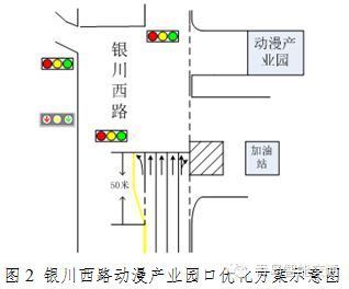 ?銀川西路動漫產(chǎn)業(yè)園路口交通組織優(yōu)化措施為,在加油站出口處增設一組信號燈,由加油站駛出的左轉(zhuǎn)車輛需按信號燈指示行駛;銀川西路西進口中央隔離護欄向北側(cè)展寬,增設一條左轉(zhuǎn)車道,長度約為50米。