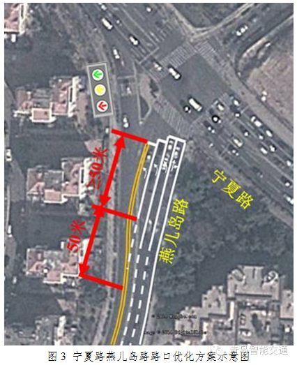 ?寧夏路燕兒島路路口交通組織優(yōu)化措施為,燕兒島路南出口車道數(shù)縮減為1條,增加南進口內(nèi)側(cè)2條左轉(zhuǎn)車道的長度,長度不少于100米;寧夏路西進口增設右轉(zhuǎn)信號燈,西向南右轉(zhuǎn)車輛需按信號燈指示通行。