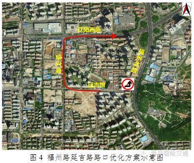 ?福州路延吉路路口交通組織優(yōu)化措施為,西進口擬禁止車輛西向北左轉(zhuǎn),原左轉(zhuǎn)車輛可提前選擇由紹興路-遼陽西路-福遼立交橋(向東、向北)行駛。