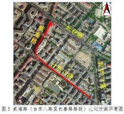 ?威海路(臺東八路至長春路路段)交通組織優(yōu)化措施為,擬取消威海路(臺東八路至長春路路段)原有南向北禁止小型汽車通行限制,調(diào)整為雙向行駛。