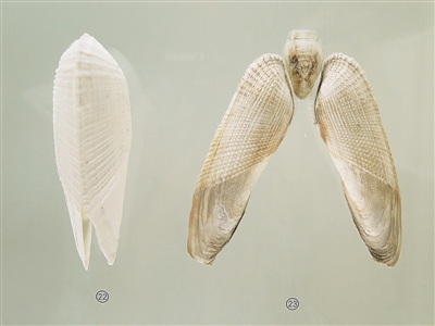 ????在這里,記者看到,各種各樣的貝殼展現(xiàn)著讓人驚嘆的奇異形態(tài):有的細(xì)長(zhǎng)扭曲如同蚯蚓,有的圓圓的像一個(gè)洋蔥頭,有的像一把撐起的小傘,有的像唐代戰(zhàn)士的頭盔,有的像粉粉的小草莓,還有的像古銅色的煙管……這里既有身價(jià)50萬(wàn)、直徑1.3米的大硨磲,也有體長(zhǎng)2毫米、需用放大鏡才能看清的小沙貝,還有來(lái)自4.5億年前奧陶紀(jì)的鸚鵡螺化石。在柔和的燈光下,精巧的紋理清晰顯現(xiàn),溫潤(rùn)的色澤層層鋪開(kāi),在經(jīng)歷了滄海沉浮、大浪淘洗之后,這一枚枚貝殼靜臥在展柜里,向往來(lái)的游人訴說(shuō)著它們的生命歷程。