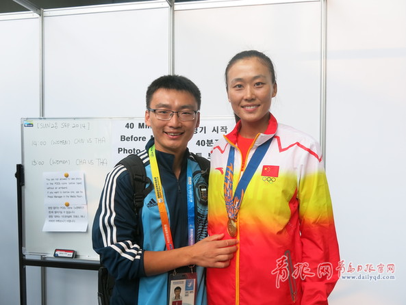 亞運會中國軍團第100金青島姑娘造!左一為青島姑娘馬園園