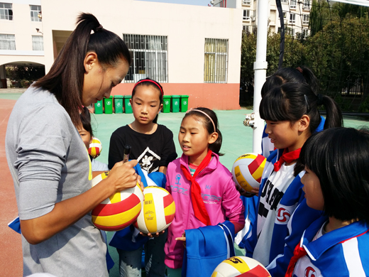 活動中,全校師生對于排球隊員們的到來表示了熱烈的歡迎,排球隊員代表為自己的學(xué)姐獻(xiàn)上了鮮艷的花束,喜悅之情溢于言表。亞運冠軍馬園園在排球上簽名留念,并給予學(xué)弟學(xué)妹們悉心的排球指導(dǎo)。馬園園在母校中行走、參觀,與老師們親切交談、合影留念,與師弟師妹們打球互動,切磋技藝,用喜悅、感激和難忘之情感染著身邊的每一個人。相信通過本次活動,會給青島唐山路小學(xué)的排球品牌建設(shè)添油助力!