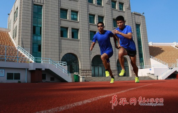 ????青島日?qǐng)?bào)/青報(bào)網(wǎng)訊 說起自己由一名法學(xué)專業(yè)大學(xué)生成為專職盲人短跑引跑員的經(jīng)歷,孟凡到現(xiàn)在仍舊感嘆“糊里糊涂入了行”。“2010年時(shí)我剛上大一,因?yàn)榕艿每炀瓦M(jìn)入了學(xué)校的田徑隊(duì)?!泵戏哺嬖V記者,有一天學(xué)校田徑隊(duì)教練打電話叫他去操場(chǎng)跑圈,他“丈二和尚摸不著頭腦”,到了之后才知道要和一位盲人運(yùn)動(dòng)員配對(duì)跑步,幾個(gè)教練模樣的人將他的右手和尚寶龍的左手綁在了一起,因?yàn)槊と速惻埽枧鋫湟幻H俗鳛橐軉T,以免跑錯(cuò)道和相撞事故的發(fā)生,他就抱著“陪跑”的心態(tài)和尚寶龍跑了幾次100米。