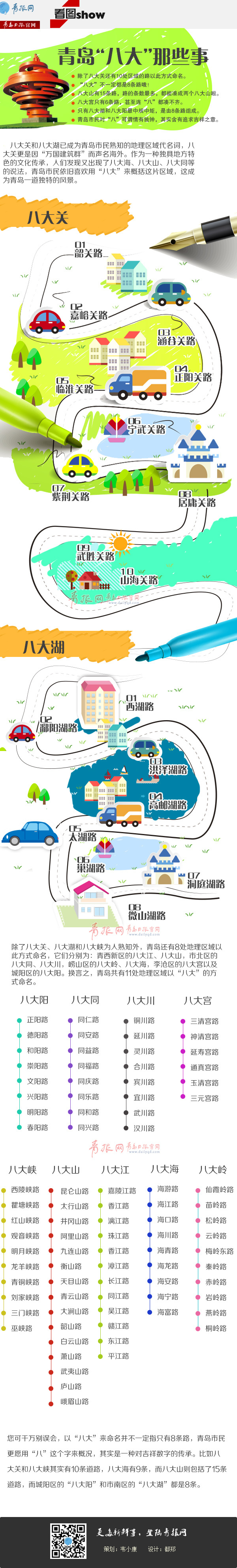 ????“我發(fā)現(xiàn)青島不僅僅有八大關(guān)、八大湖和八大峽吧,相似的地方還有很多,大家都來說說你家在哪個(gè)八大? ”這幾天,一則微博非常熱,有網(wǎng)友提議大家都來找一下類似于八大關(guān)、八大峽等這樣以相似名稱命名的街道,再歸納幾個(gè)“八大”,此貼得到了網(wǎng)友的廣泛討論,記者調(diào)查后得出結(jié)論,目前能稱得上“八大”的區(qū)域,一共有十一處。