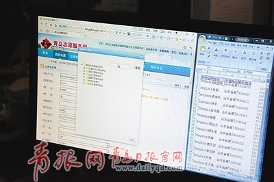 ■市北區(qū)洛陽路街道商丘路社區(qū)里,電腦正在自動將社區(qū)志愿者信息填報給市志愿者服務網(wǎng)。 劉麗娜 攝