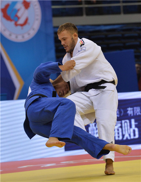 ??? 激戰(zhàn)正酣的“泰山地產(chǎn)Q1杯”2014年世界柔道大獎賽(中國站),今天在青島體育中心國信體育館進(jìn)行最后一天的賽事,整個比賽今晚結(jié)束,五點開始決賽。周光輝攝