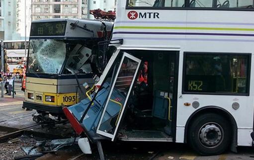 香港輕軌與巴士相撞致19傷 3條輕軌線暫停(圖)