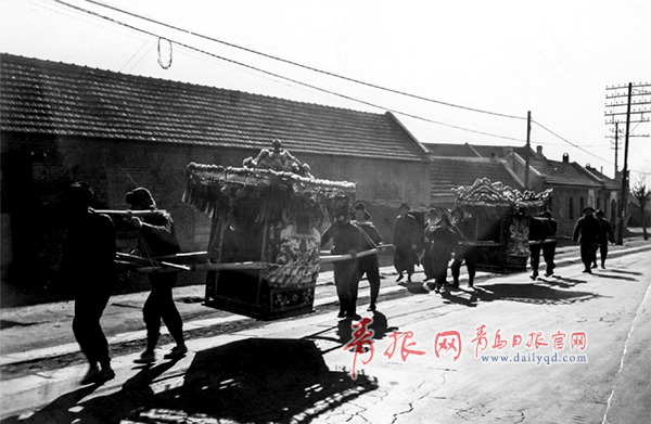 1946年的迎親隊(duì)伍,花轎還是常規(guī)配置
