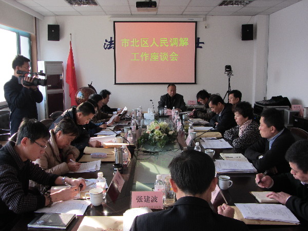 青報網(wǎng)訊? 12月12日上午,市北區(qū)人民調(diào)解工作座談會在區(qū)司法局會議室召開,會議由市北區(qū)人民政府副區(qū)長童煜同志主持,區(qū)政協(xié)副主席陸德興同志全程參加了會議。座談會專門邀請了市司法局基層工作處有關(guān)領(lǐng)導(dǎo)、市社科院專家學(xué)者、區(qū)人大法工委有關(guān)領(lǐng)導(dǎo)、區(qū)人大代表、政協(xié)委員、區(qū)專業(yè)性調(diào)委會、街道司法所和社區(qū)調(diào)委會的代表及區(qū)司法局機關(guān)干部共22人到會參加座談討論。會上,首先聽取了區(qū)司法局局長劉居慶同志對全區(qū)人民調(diào)解工作情況的匯報,然后與會人員就如何做好新形勢下的人民調(diào)解工作,如何做好化解社會矛盾糾紛等問題展開座談討論。與會代表結(jié)合工作實際,就如何做好我區(qū)今后的人民調(diào)解工作,如何打造市北特色調(diào)解,建言獻(xiàn)策。會上,童區(qū)長充分肯定了區(qū)司法局的人民調(diào)解工作,并強調(diào),市北區(qū)人民調(diào)解工作要以此次會議為契機,謀劃好明年以及今后的人民調(diào)解工作,要建好資庫,實行政府購買服務(wù),提出要針對典型案例,研究和提高人民調(diào)解工作新水平等新課題,要加強信息化建設(shè),打造百姓、政府、司法資源信息化平臺,做好網(wǎng)格化對接,齊抓共管、合作共濟,實行聯(lián)合調(diào)處工作機制,要創(chuàng)新調(diào)解方式,積極化解矛盾糾紛,起好步,積極打造具有市北特色的人民調(diào)解。最后其他與會區(qū)領(lǐng)導(dǎo)也分別做了點評和總結(jié)發(fā)言,收到了良好的效果。