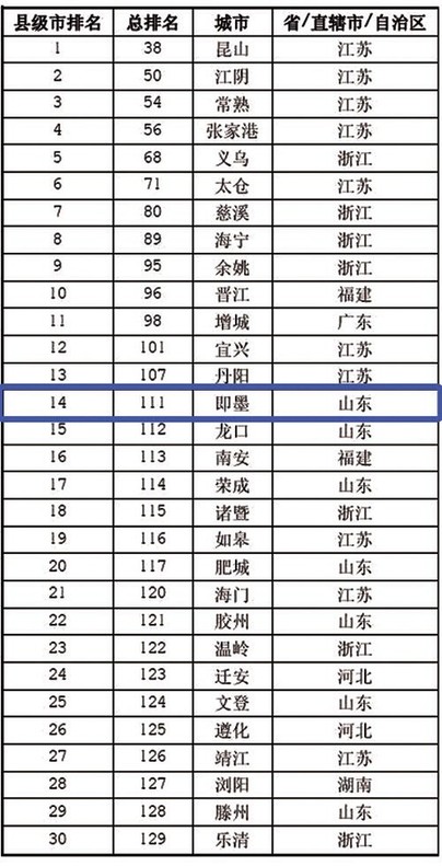 青島兩地市入選2014福布斯中國(guó)大陸最強(qiáng)縣 即墨排名第14
