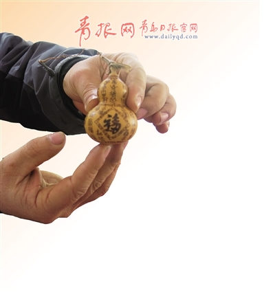 ????①黃旭在“迷你”葫蘆上用“細(xì)尖烙筆”烙出一百個(gè)“?!?。
