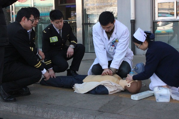 待大多數(shù)旅客安全疏散后,車站的多名工作人員手持滅火器沖入候車廳對“火源”進行撲救工作,對于因為“受驚過度”而無法行動的旅客則通過擔架進行轉(zhuǎn)移。由于“火勢”太大滅火器無法撲滅,車站工作人員迅速撤出并撥打了119和120,杭州路消防支隊的消防車以及交通醫(yī)院的急救車同時趕到現(xiàn)場。消防隊員通過高壓水槍控制住了火勢,醫(yī)護人員則通過心肺復蘇等多種方式對現(xiàn)場傷員進行救治,整個演習過程持續(xù)了10分鐘。