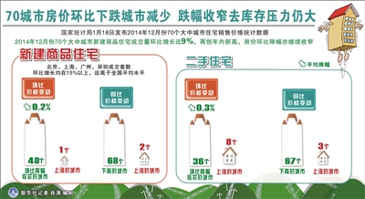 ????國(guó)家統(tǒng)計(jì)局城市司高級(jí)統(tǒng)計(jì)師劉建偉分析稱,受上年同期基數(shù)較高影響,去年12月份房?jī)r(jià)同比仍下降。從個(gè)數(shù)看,12月份新建商品住宅和二手住宅價(jià)格同比下降的城市個(gè)數(shù)分別為68個(gè)和67個(gè),上漲的城市個(gè)數(shù)分別為2個(gè)和3個(gè),均與11月份相同。不過(guò)從幅度看,新建商品住宅和二手住宅價(jià)格同比綜合平均降幅均比11月份有所擴(kuò)大。