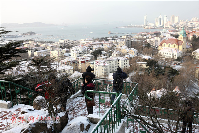 ??? 2月8日,青島信號山上,攝影愛好者在拍攝雪景。清晨,青島地區(qū)降雪,老城區(qū)的幢幢洋樓披上銀裝,宛如一個童話世界,美侖美奐。受降雪天氣影響,青島轄區(qū)的青銀高速機場段、青新高速、青威高速、沈海高速平度萊西段、榮烏高速青島段清晨暫時封閉。青島日報/青報網(wǎng)記者 徐崇德 攝