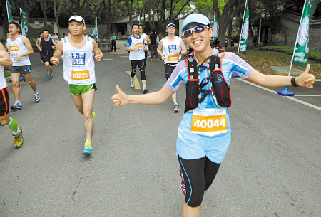 ????2014年5月,一場(chǎng)以“為愛奔跑”為主題的山地馬拉松賽在寧波市江北區(qū)舉行,吸引了包括臺(tái)灣地區(qū)在內(nèi)的全國各地3000名長(zhǎng)跑愛好者參加?!拔沂菐е掀藕⒆右黄饛臏刂葳s來參賽的,沒想到居然拿了男子組冠軍,這次比賽的組織非常棒!”在男子全程組奪得冠軍的溫州人吳建以3小時(shí)48分02秒的成績(jī)到達(dá)終點(diǎn),幸運(yùn)地拿到了自己的第一座馬拉松冠軍獎(jiǎng)杯。香港100公里越野跑賽“小金人”獲得者錢程熙同樣給了本次比賽很高評(píng)價(jià):“如果10分為滿分,寧波這次的辦賽水平在9分以上。”