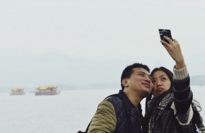 ????大年初二,一對情侶在西湖邊自拍,天空稍顯霧蒙蒙,但當(dāng)天空氣質(zhì)量為優(yōu),AQI指數(shù)為49。 龍巍 攝