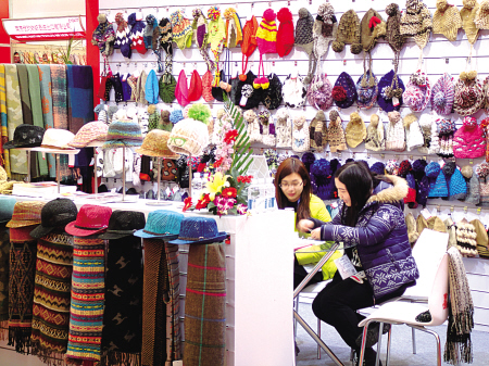 一家專營帽子的寧波企業(yè)在華交會上展示產(chǎn)品。(俞永均攝)