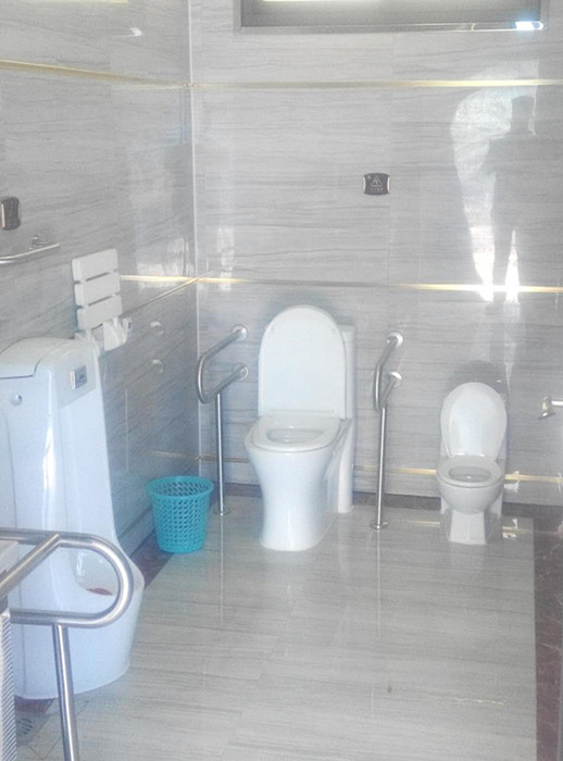 切實踐行人性化的服務(wù)宗旨和工作理念,按照1:1.5的比例科學(xué)設(shè)置男女蹲位,并設(shè)置嬰兒打理臺、兒童洗手臺、置物架、老人呼叫電鈴、除臭飄香機等人性化設(shè)施。特別設(shè)置第三衛(wèi)生間,解決了不同性別的家庭成員共同外出,其中一人的行動無法自理,上廁所不便的問題。