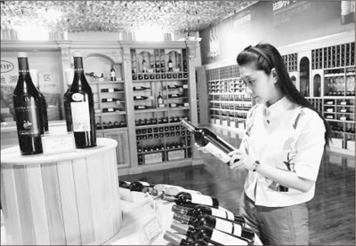 圖為5月16日在青島前灣保稅港區(qū)進(jìn)口食品總部基地,消費(fèi)者查看商品信息?! 堖M(jìn)剛攝