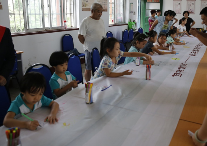 本次活動在劉家社區(qū)市民服務(wù)中心舉行,工作人員提前準備好了應(yīng)景的長卷、水彩筆、勾畫筆、簽字筆、油畫棒等繪畫材料,盡管陣雨突襲,也絲毫沒有影響大家的積極和熱情,現(xiàn)場吸引了30余名小朋友及家長前來參加。