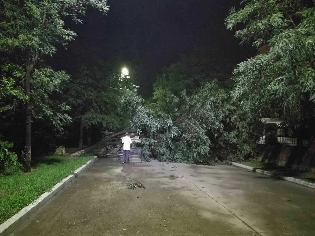 ??? 青報網訊 ?8月6日七點四十五分左右,平度市區(qū)迎來一輪強降雨,風狂雨驟,在狂風的襲擊下,行道樹倒伏現象時有發(fā)生,一場與時間賽跑的戰(zhàn)斗在這個暗夜中悄悄拉開……