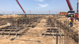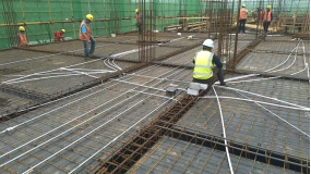 ????二、中心醫(yī)院項(xiàng)目:正在進(jìn)行主體施工,局部建至六層。A區(qū)六層混凝土澆筑完成,七層內(nèi)架搭設(shè)完成,模板安裝完成。B區(qū)三層混凝土澆筑完成,四層內(nèi)架搭設(shè)完成,模板安裝完成40%。C區(qū)地下室厚板內(nèi)架搭設(shè)完成50%,D區(qū)北側(cè)四層第一塊模板安裝完成,三層第二塊混凝土澆筑完成,三層第三塊內(nèi)架搭設(shè)完成,南側(cè)第二塊混凝土澆筑完成,第三塊鋼筋綁扎完成,南側(cè)圓弧車道鋼筋綁扎完成。