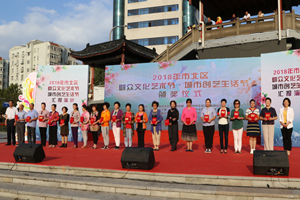 青報網(wǎng)訊 日前,由市北區(qū)委宣傳部、市北區(qū)文新局主辦,市北第一文化館、市北第二文化館以及各街道辦事處承辦的2018年市北區(qū)群眾文化藝術(shù)節(jié)·城市創(chuàng)藝生活節(jié)匯報演出在海云廣場舉行。匯報演出中,來自相關(guān)街道藝術(shù)節(jié)專場活動的優(yōu)秀節(jié)目進(jìn)行了展演,舞蹈、器樂合奏、戲曲、歌伴舞等節(jié)目贏得了現(xiàn)場觀眾的陣陣掌聲。同時,對藝術(shù)節(jié)期間涌現(xiàn)出的“文化之星”進(jìn)行了表彰?!?/p>