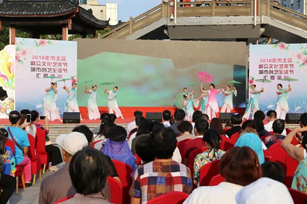 藝術(shù)節(jié)期間,以“多彩市北”為活動主題,各街道、社區(qū)深入挖掘轄區(qū)人文資源、文藝人才和隊伍,組織舉辦了200余場次的主題文藝演出、納涼晚會和主題活動,將文化的“觸角”延伸到各個社區(qū)、廣場、家庭,豐富活躍了群眾夏日文化生活,打造了屬于轄區(qū)居民的文化舞臺。