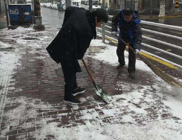 大家拿上掃雪的鐵鍬、長掃帚等工具,就鉆進了社區(qū)的各條要道,居民樓前、沿邊道路隨處可見工作人員忙碌的身影,即使風雪仍在、手指耳朵凍紅,他們?nèi)月裰^,弓著腰,專注地清掃著積雪。經(jīng)過大家的齊心協(xié)力,轄區(qū)內(nèi)主要出行道路上的積雪基本被清理干凈,真正確保了居民平安出行,為寒冷的冬日增添一抹溫暖。