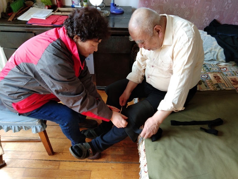 2月21日上午,幫辦員萬玉潔、李金城像往常一樣來到吉林支路20號(hào)一單元501戶獨(dú)居老人于興喜家中走訪看望。在與老人的交談中得知,老人有副護(hù)膝需要縫補(bǔ),幫辦員萬玉潔連忙回應(yīng)說幫助老人縫補(bǔ)護(hù)膝,并利用中午休息時(shí)間幫助老人將護(hù)膝縫補(bǔ)好,又給老人送回家中并親自幫老人試戴,老人高興地連聲道謝。看到老人滿意的樣子,幫辦員心里也很高興。