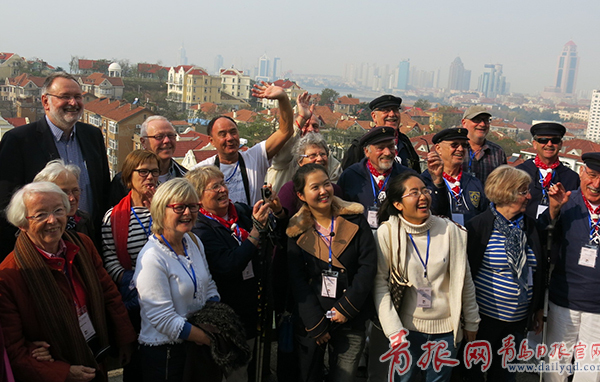 ????青島日報/青報網訊 11月5日上午,德國老兵后裔和德國“中國青島”合唱團的“先輩尋蹤”活動在小魚山公園和中國海洋大學魚山校區(qū)(俾斯麥兵營)開始,島城文史專家衣琳負責講解。據介紹,德國占領青島后,在小魚山山頂修筑炮臺,并配置了150毫米加農炮,1985年3月,小魚山公園建成。