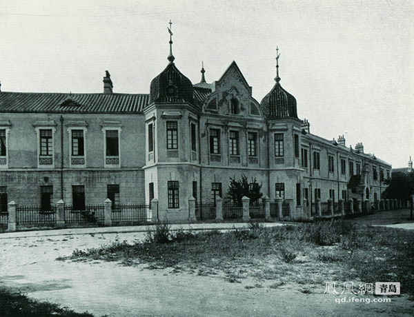 ????圣心修道院位于露特波德街(今浙江路)與不來梅路(今肥城路)交界處的一片高地上(今浙江路28號(hào)),建于1901年。這是城市記憶中的第一座修道院,標(biāo)志著天主教正式傳入青島。建筑面積約7606平方米,內(nèi)設(shè)一所女子寄宿學(xué)校和圖書館。德國(guó)著名建筑師貝爾納茨設(shè)計(jì),他在建筑東南轉(zhuǎn)角處設(shè)計(jì)了兩個(gè)左右對(duì)稱的新巴洛克式塔樓,就此形成視覺標(biāo)志。