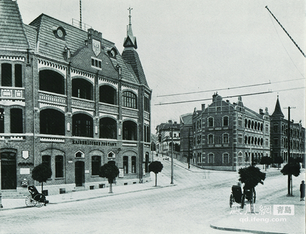 ????處于畫面左側(cè)的建筑為膠澳帝國(guó)郵政局,建于1901年,為青島的郵政電信樞紐。以東相鄰的兩座樓分別為德國(guó)人商業(yè)大樓和西姆森公司大樓。作為青島歷史上第一條主商業(yè)街,這條道路凝結(jié)著城市早期的金融、郵電與商貿(mào)密碼。