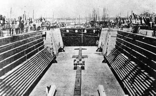 ????該船塢為一座萬(wàn)噸級(jí)船塢,與青島第一體育場(chǎng)、棧橋回瀾閣并稱當(dāng)時(shí)青島三大建筑。