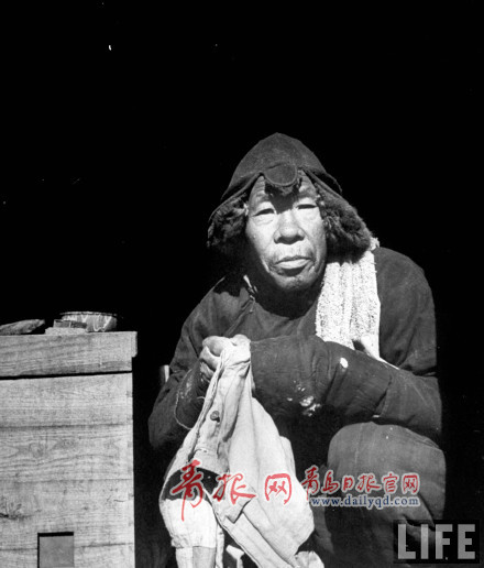 美國人鏡頭下1948年青島:農村婦女破敗房子
