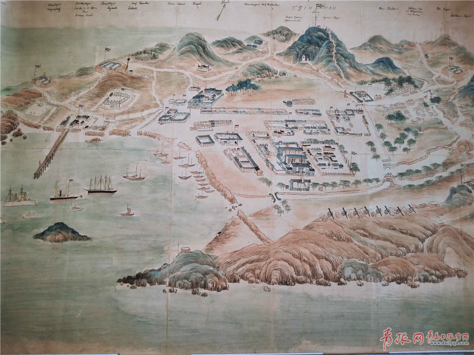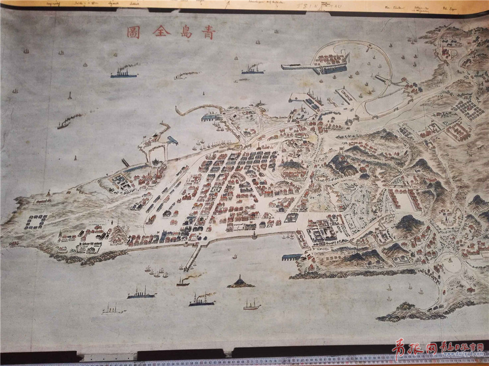“1910年這張鳥(niǎo)瞰圖也是唯一一張知道如何從青島帶到德國(guó)的鳥(niǎo)瞰圖,曾在福柏醫(yī)院工作過(guò)的醫(yī)生里夏德·翁施可能是1910年秋在青島買的這幅鳥(niǎo)瞰圖。1911年夏,他去世后,他妻子帶著兩個(gè)孩子離開(kāi)青島時(shí)將該圖攜帶回德國(guó)?!笔袡n案局工作人員介紹說(shuō),通過(guò)這些鳥(niǎo)瞰圖,可以直觀、快捷地了解和理解青島城市發(fā)展的某些篇章,這些地圖也為早期青島城市歷史研究提供了珍貴的一手史料。